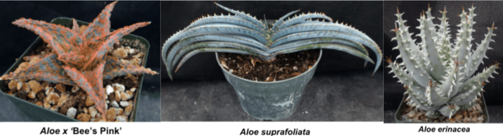 If you want to keep Haworthia and Gasteria as their own genera (though they have their own issues we won’t discuss here) then you have to be willing to split out a few Aloes from Aloe. Thankfully the vast majority of traditional Aloe species are still in Aloe and less than 20 species have to be removed from the genus. The most notable segregate genus is Aloidendron which are easy to recognize as they constitute 6 tree or shrub species including A. barbarae, A. dichotomum, & A. ramosissima. The largest segregate genus with 10 species is Aloiampelos which tends to be shrubby or climbing species. The third genus Kumara was created for the well- known Aloe plicatilis (now Kumara plicatilis) and one other similar species. For the sake of our Plant of the Month show you can submit plants from all four “Aloe” genera: Aloe, Aloiampelos, Aloidendron, and Kumara.